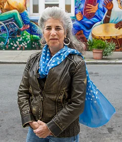 Juana Alicia painting the La Llorona mural in the San Francisco Mission District
